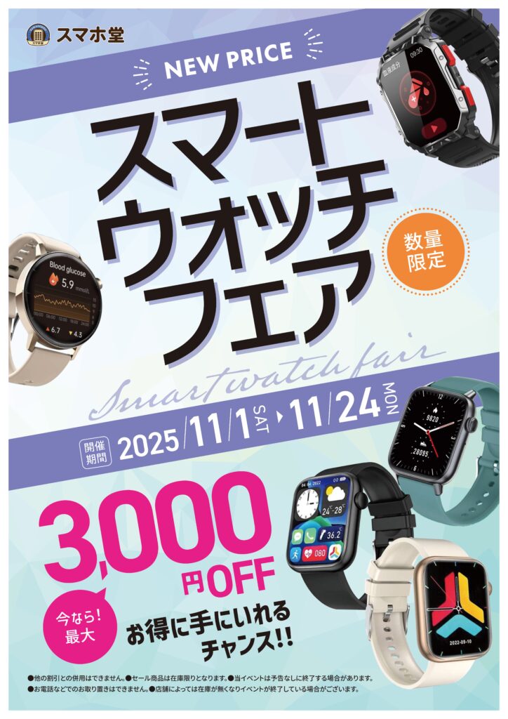 2025年11月1日から11月24日までの期間限定で、あなたのスマートライフを強力にサポートするスマートウォッチフェアを開催いたしております。