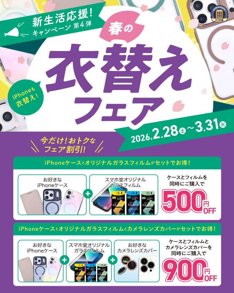 - iPhoneケース、オリジナルガラスフィルムセットで500円引き