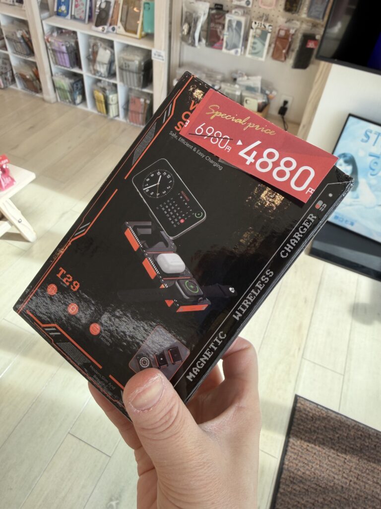 なんとMagSafe充電器もお買い得価格になって販売中!しかも3in1なのでiphoneだけじゃなくApple WatchやAir Pods(イヤホン)も同時に充電ができる使用となっています。今までケーブルで充電されていた方や気になるけど値段がそこそこするなあと思われてた方もこのセール期間中が狙い目ですよ!いくつか種類がございますのでぜひ見にきてくださいね!