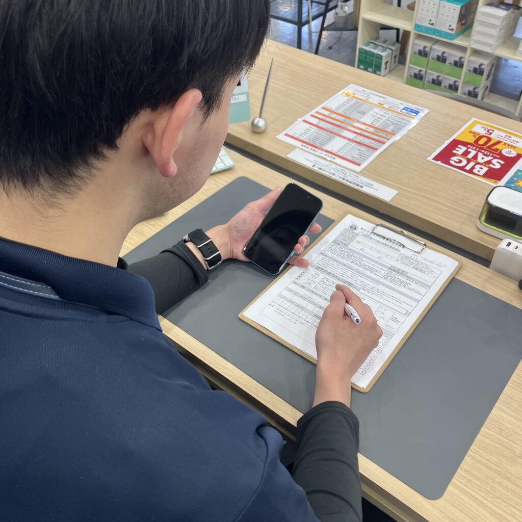 本査定の金額にご納得いただけましたら、ご本人様確認書類(免許証、マイナンバーカードなど)をご提示いただき、領収書を記入いただいております。
