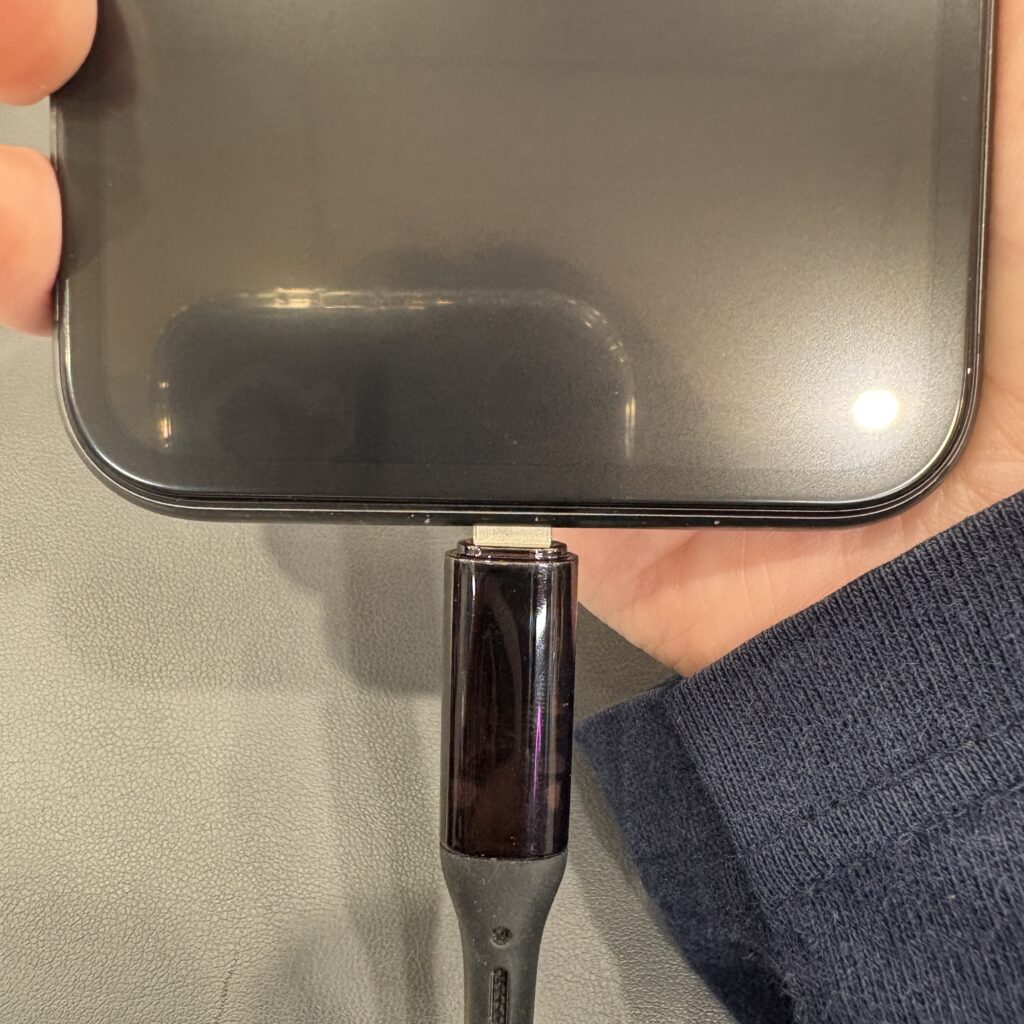 これが充電口の奥に追いやられていたことで、充電器の刺さりが悪くなり充電ができなくなっていたということですね。