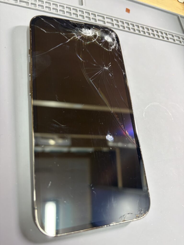 iPhone13Pro画面交換させていただきました! 画面がバキバキに、、😱 『もうダメかも』と諦めるにはまだ早い!! お修理で復活するケースがたくさんございます✨ 修理もスマホ堂にお任せください💪