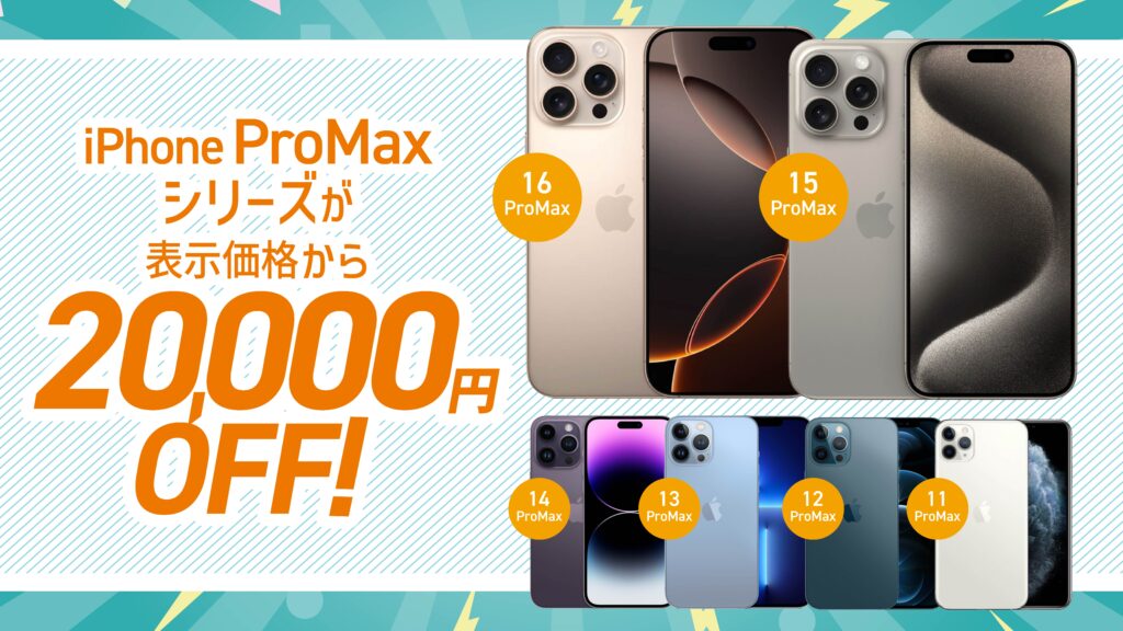 ・iPhone ProMaxシリーズが表示価格から20,000円OFF!