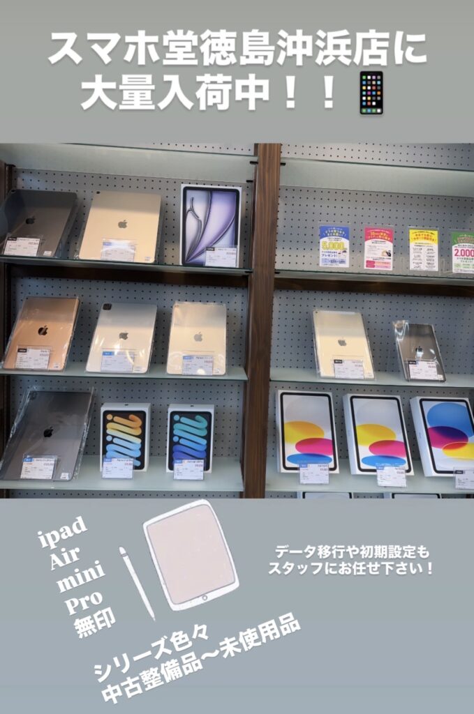 進学やお仕事でiPadが必要!とお探しの方が増えているiPadがスマホ堂沖浜店に中古整備端末、未使用品ともに大量入荷中☆iPadAir,Pro,miniなど様々なモデルからあなたの使い方にピッタリなiPhoneを✨️